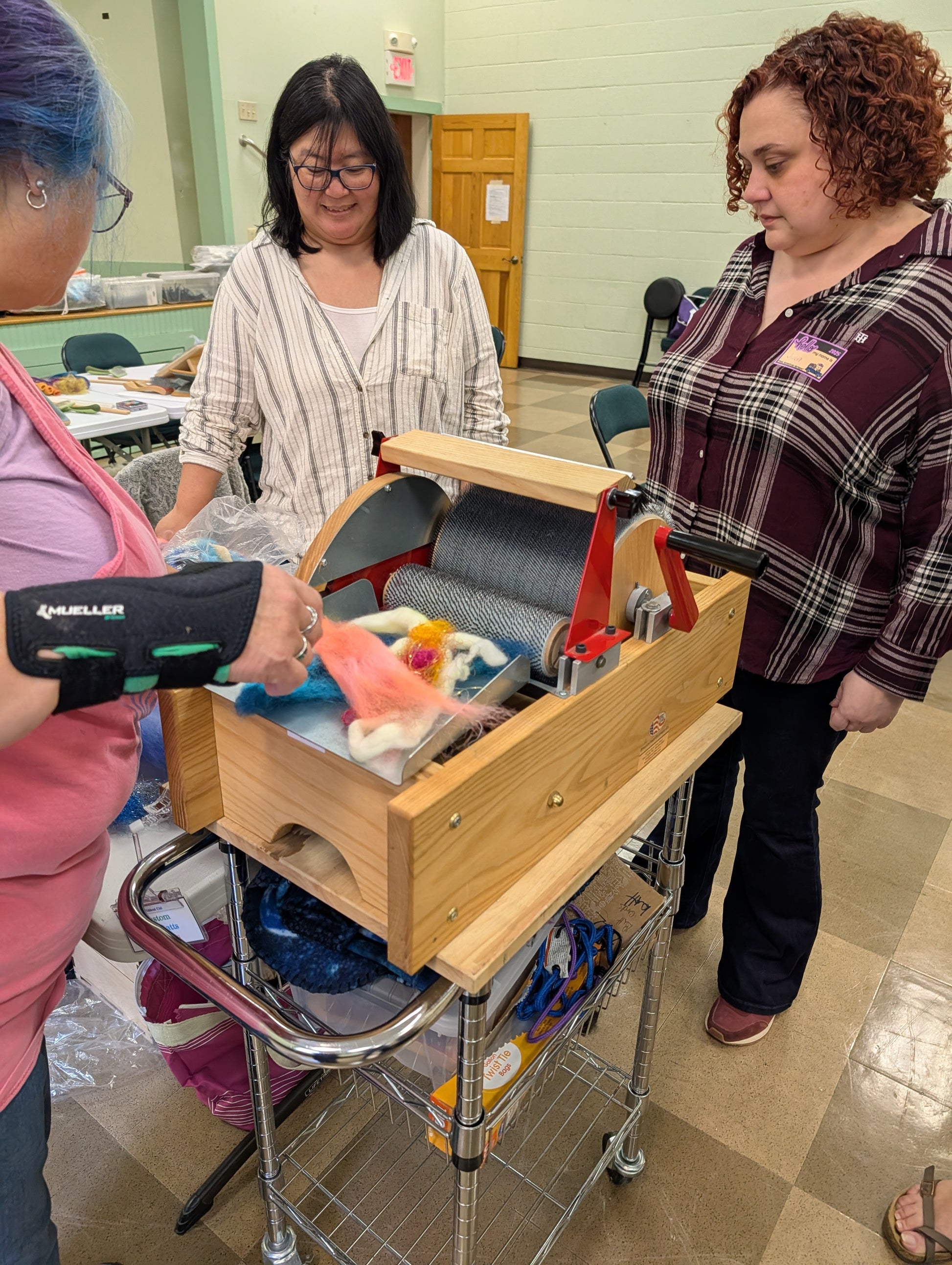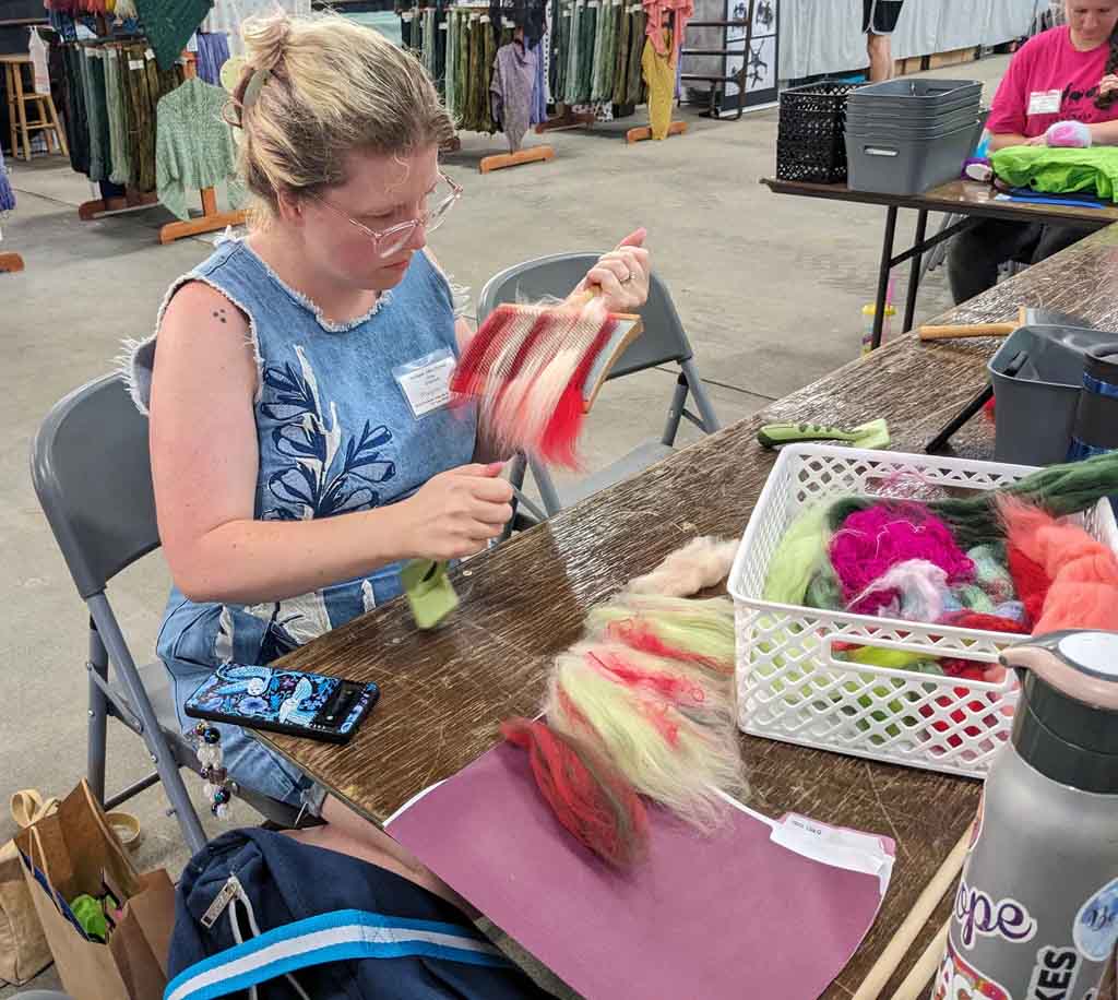 What is an art batt? How might you make one? What can you do with it, and why would you want to? How does a dog comb come into the fiber-prep picture? And what in the world is a rolag? Come card with Q and learn answers to those questions–and more. Yes, we ARE batty for batts–and we think you will be as well!